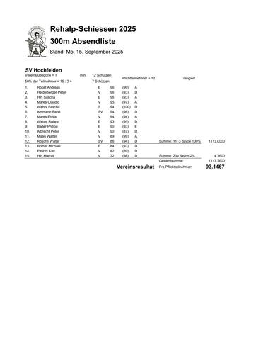 Documents Home » Resultate » Absendliste 300m Ordner Absendliste 300m Home » Resultate » Absendliste 300m » Gewehr 300m Einzelresultate pro Verein pdf Gewehr 300m Einzelresultate pro Verein Veröffentlicht am 16 September 2025 Geändert am 16 September 2025 Von Anonym 243 Downloads Download (pdf, 183 KB) RAS2025G_Absend.pdf