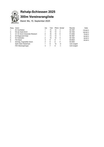 Documents Home » Resultate » Vereinsrangliste 300m Ordner Vereinsrangliste 300m Home » Resultate » Vereinsrangliste 300m » Vereinsrangliste Gewehr 300m pdf Vereinsrangliste Gewehr 300m Veröffentlicht am 16 September 2025 Geändert am 16 September 2025 Von Anonym 285 Downloads Download (pdf, 54 KB) RAS2025G_Verein.pdf